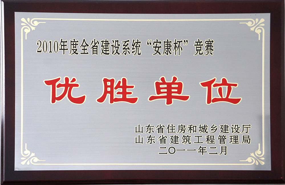被山東省住房和城鄉(xiāng)建設(shè)廳、山東省建筑工程管理處聯(lián)合評(píng)為2010年度全省建設(shè)系統(tǒng)“安康杯”競賽優(yōu)勝單位。