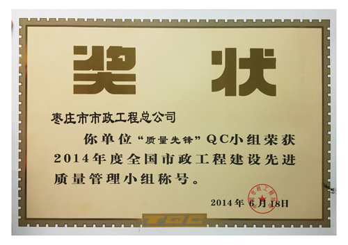 “質(zhì)量先鋒”QC小組榮獲2014年度全國(guó)市政工程建設(shè)先進(jìn)質(zhì)量管理小組稱號(hào)