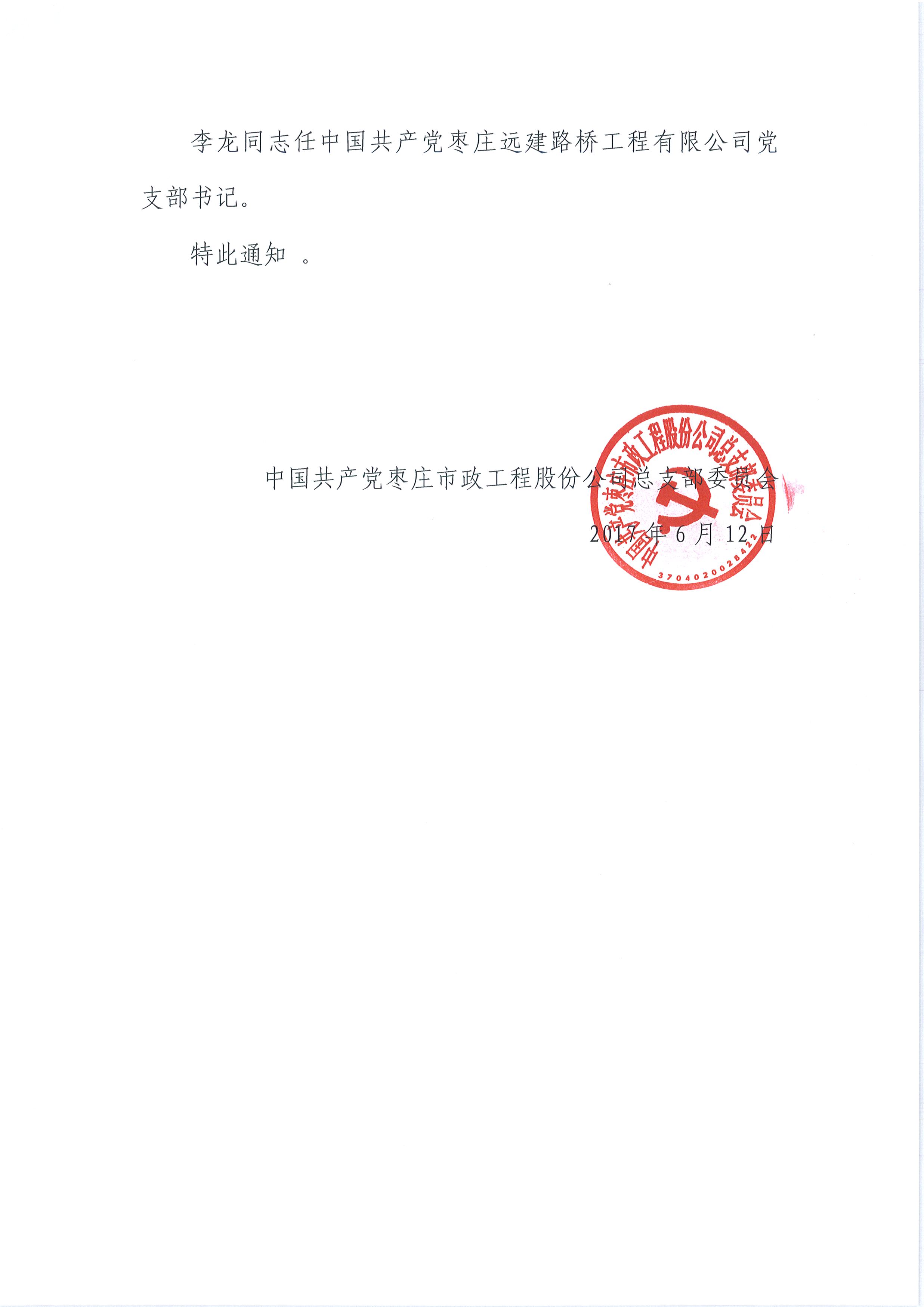 關(guān)于成立公司黨組織的通知