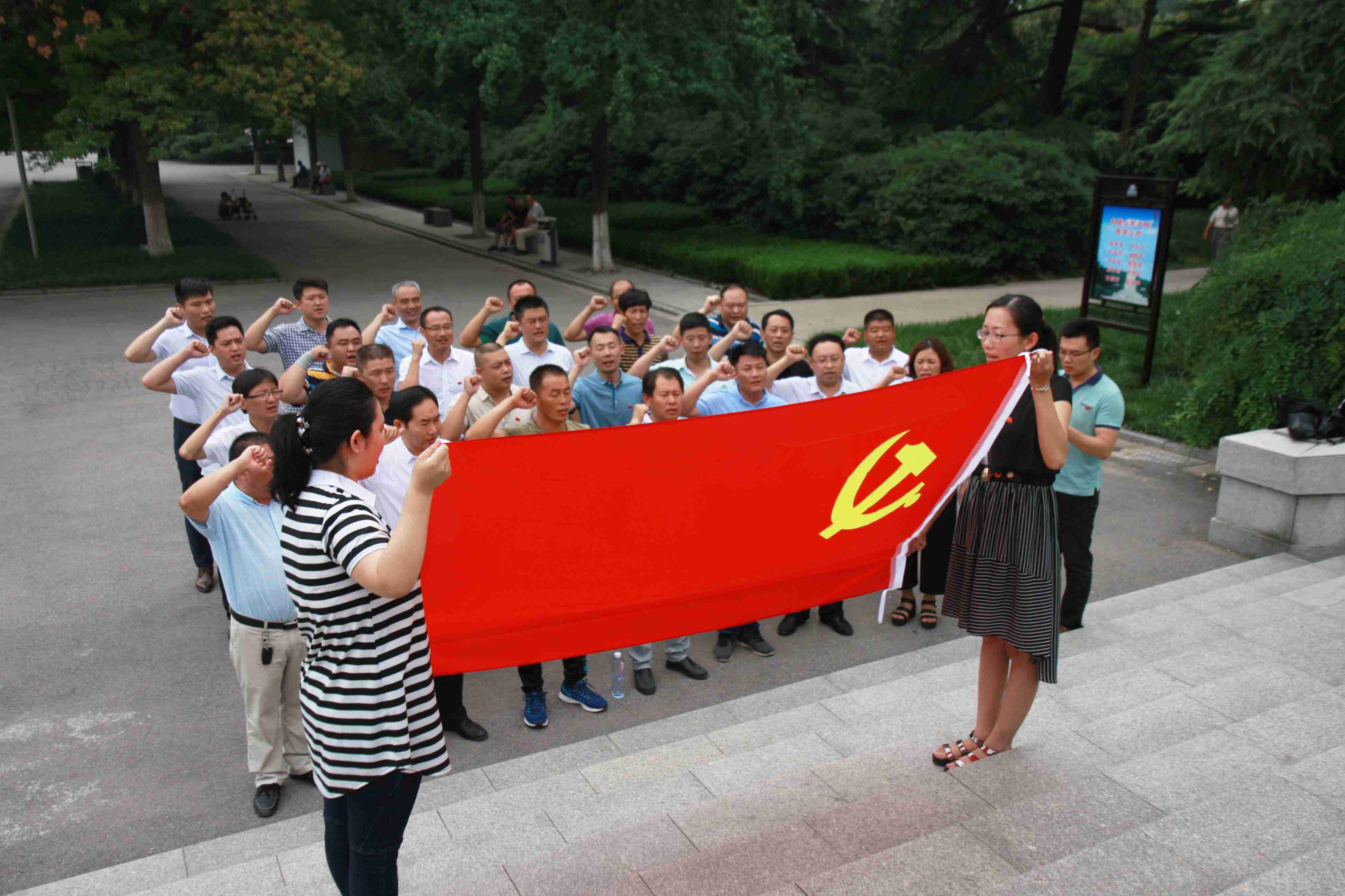 在淮海戰(zhàn)役紀(jì)念雕塑像前,黨旗高擎,全體黨員在黨旗下舉行了莊嚴(yán)的黨員宣誓活動(dòng),重溫了入黨誓詞。錚錚誓言回響在淮海大地的上空,震撼在每一名黨員的心頭。通過重溫入黨誓詞,廣大黨員干部的內(nèi)心再一次受到洗禮,進(jìn)一步喚醒了每一名黨員“初心”,讓廣大黨員干部進(jìn)一步樹立了黨員干部“沖鋒在前、吃苦在前、奉獻(xiàn)在前”的擔(dān)當(dāng)意識(shí)和黨員品質(zhì),時(shí)刻提醒自己牢記黨員身份,牢記自己的責(zé)任和使命,在工作崗位上堅(jiān)持發(fā)揚(yáng)先鋒模范帶頭作用,促使棗莊市政戰(zhàn)斗力、凝聚力不斷加強(qiáng),進(jìn)一步弘揚(yáng)和發(fā)展棗莊市政“敢打硬仗、能打勝仗”的鐵軍精神。