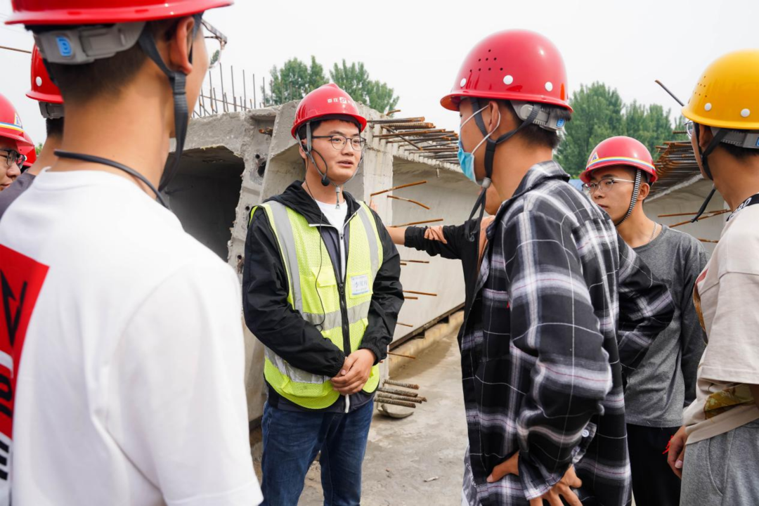 學(xué)院師生一行先到工程分公司遺棠預(yù)制梁場(chǎng)參觀,梁場(chǎng)施工負(fù)責(zé)人李闖闖為師生們?cè)敿?xì)地介紹了集團(tuán)公司的發(fā)展?fàn)顩r及箱梁、空心板的制作流程與質(zhì)量控制,并耐心回答同學(xué)們提出的各種問題。隨后師生一行到達(dá)世紀(jì)大道欣興路立交及水穩(wěn)攤鋪施工現(xiàn)場(chǎng),世紀(jì)大道(店韓路—欣興路段)項(xiàng)目總工馬寧向來訪師生介紹了世紀(jì)大道的項(xiàng)目概況、施工流程和工藝特點(diǎn),并帶領(lǐng)師生們?cè)陧?xiàng)目工地進(jìn)行實(shí)地參觀。從書本聯(lián)系實(shí)際,從平面走向立體,生動(dòng)形象的進(jìn)行講解。參觀學(xué)生均表示受益匪淺,對(duì)施工現(xiàn)場(chǎng)有了更深層次的認(rèn)識(shí)。