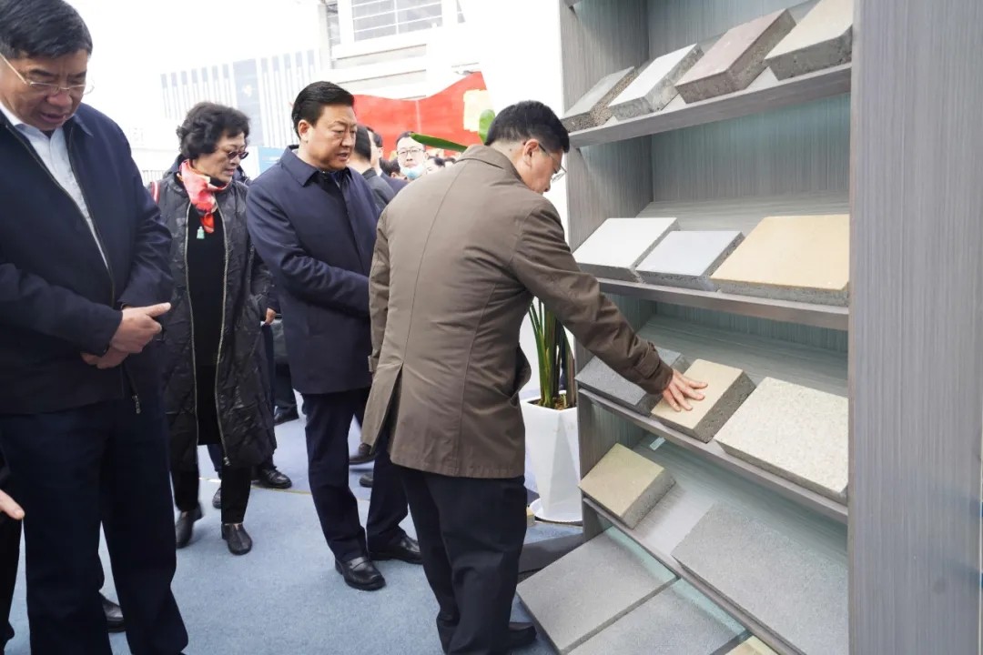展會(huì)期間,省住建廳廳長(zhǎng)王玉志及棗莊市委陳平書(shū)記等領(lǐng)導(dǎo)來(lái)到棗莊市政建設(shè)集團(tuán)展廳進(jìn)行參觀指導(dǎo)。集團(tuán)董事長(zhǎng)趙峰向觀展領(lǐng)導(dǎo)介紹了集團(tuán)公司概況、發(fā)展歷程、重點(diǎn)工程建設(shè)成果、弘偉建材新型材料等。領(lǐng)導(dǎo)一行對(duì)弘偉建材公司生產(chǎn)的透水磚及建筑垃圾再生制品表達(dá)出濃厚的興趣,長(zhǎng)時(shí)間駐足參觀并進(jìn)行了現(xiàn)場(chǎng)詢問(wèn)。參觀后,省市領(lǐng)導(dǎo)對(duì)我集團(tuán)公司展示內(nèi)容給予了高度評(píng)價(jià),并鼓勵(lì)公司開(kāi)發(fā)更多的環(huán)保新型產(chǎn)品,為城市的發(fā)展作出更大貢獻(xiàn)。